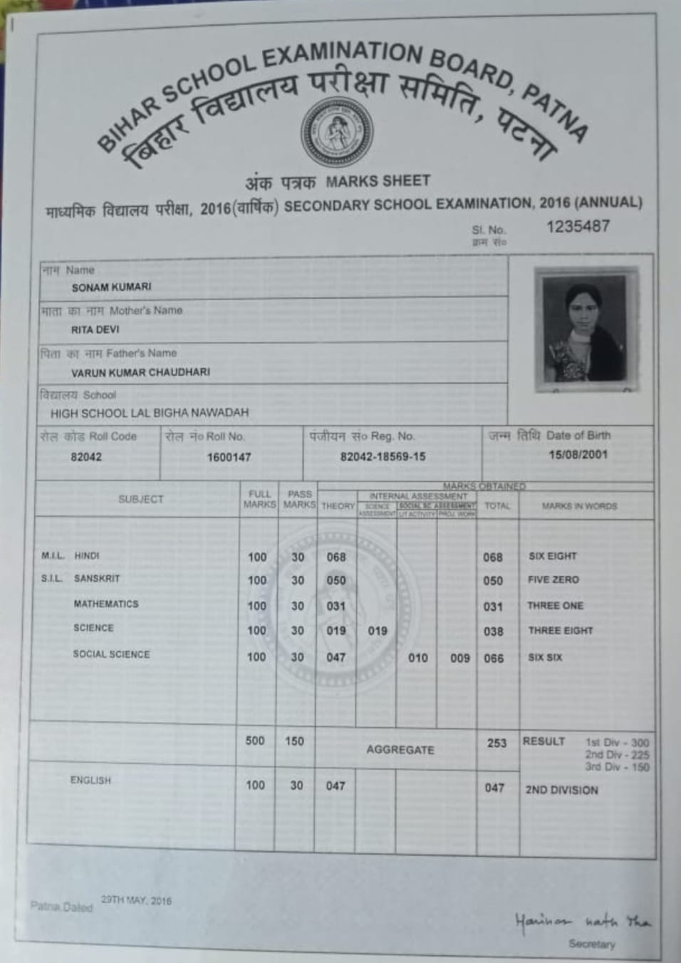 | : | Matric | |
