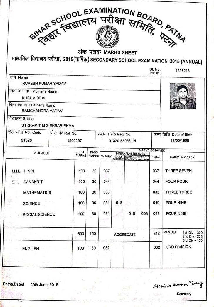| Exam | Full Marks | Pass Marks | Marks Obtained |