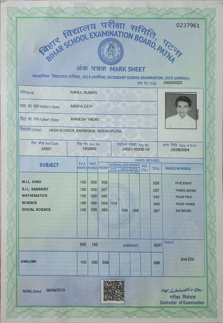 | Exam | Full Marks | Pass Marks | Marks Obtained |