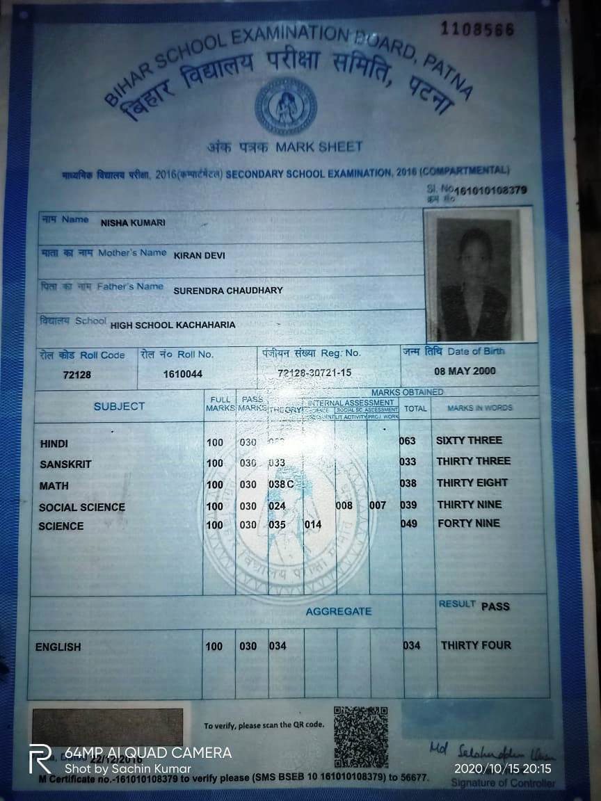 | Exam | Full Marks | Pass Marks | Marks Obtained |