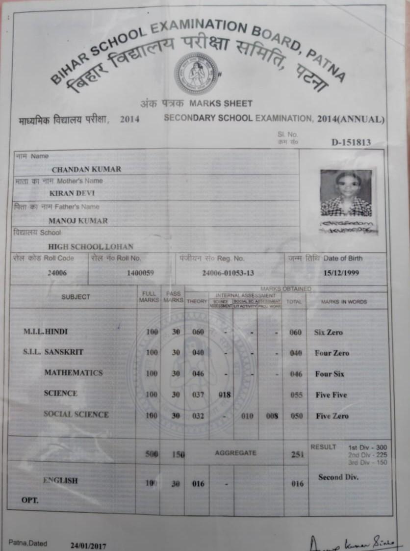 | Exam | Full Marks | Pass Marks | Marks Obtained |