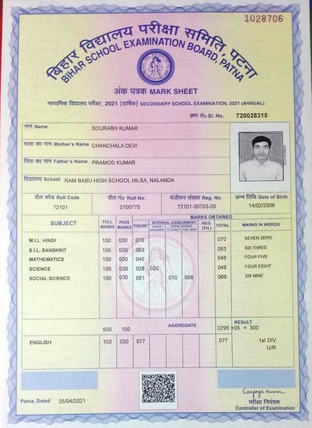 | Exam | Full Marks | Pass Marks | Marks Obtained |