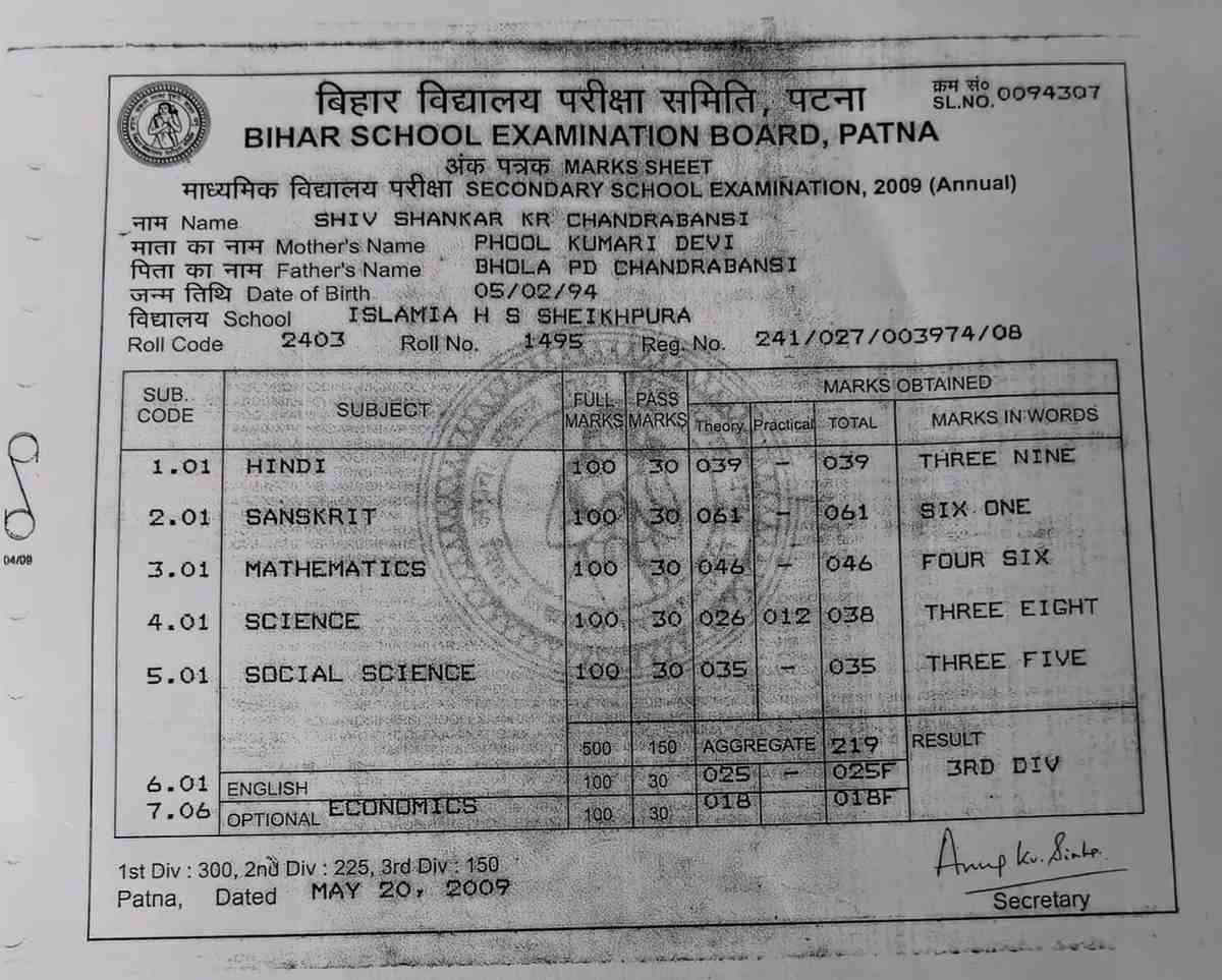 | Exam | Full Marks | Pass Marks | Marks Obtained |