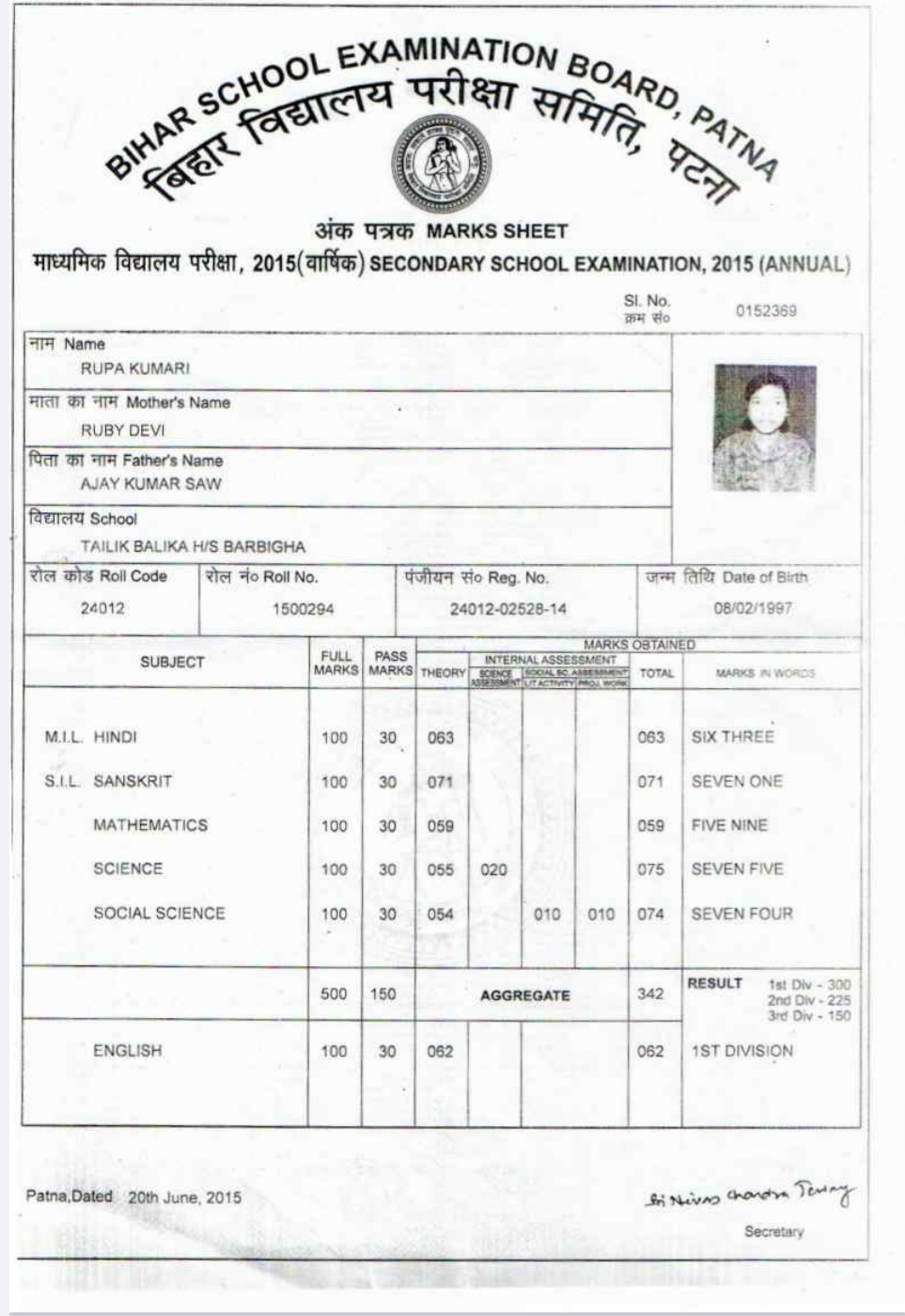 | Exam | Full Marks | Pass Marks | Marks Obtained |
