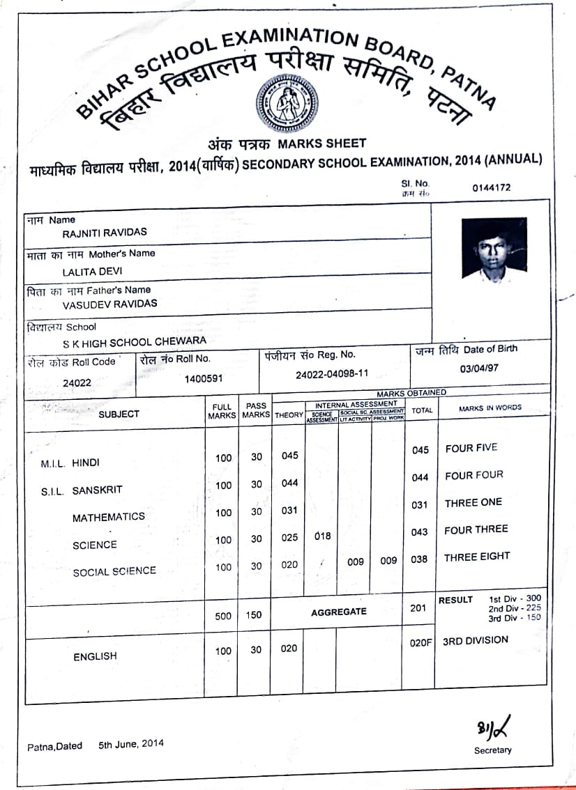 | Exam | Full Marks | Pass Marks | Marks Obtained |