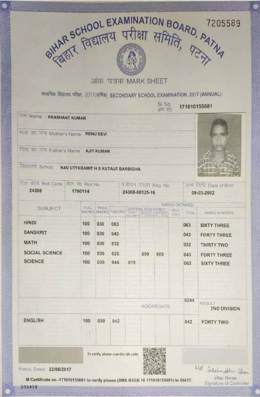 | Exam | Full Marks | Pass Marks | Marks Obtained |