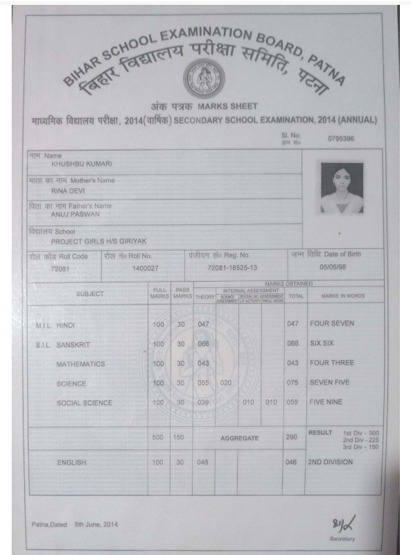 | Exam | Full Marks | Pass Marks | Marks Obtained |