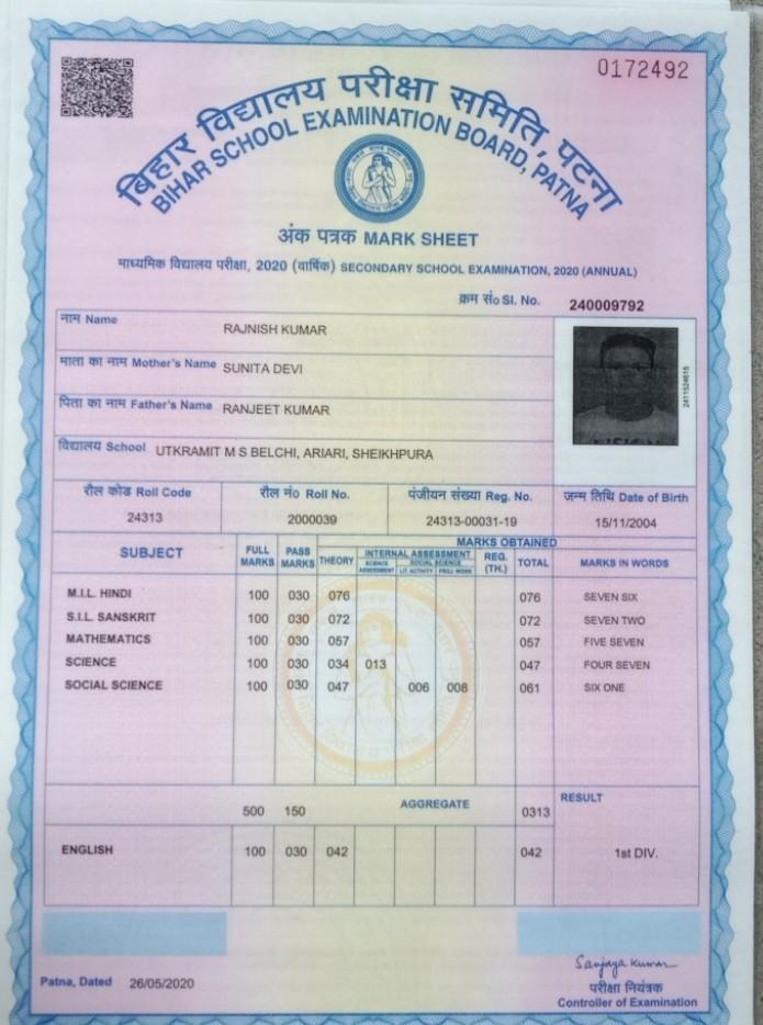 | Exam | Full Marks | Pass Marks | Marks Obtained |