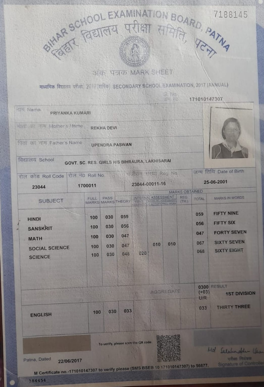 | Exam | Full Marks | Pass Marks | Marks Obtained |