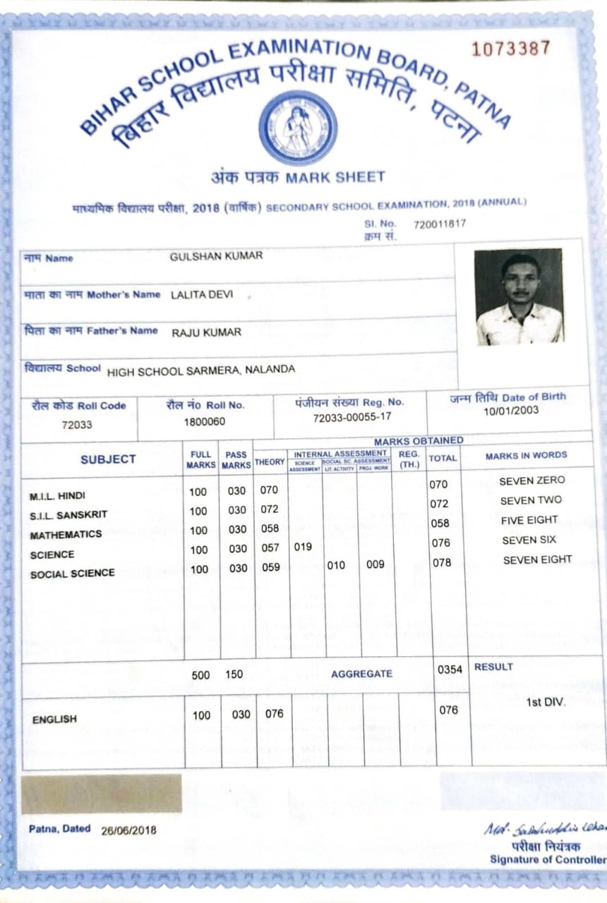 | Exam | Full Marks | Pass Marks | Marks Obtained |