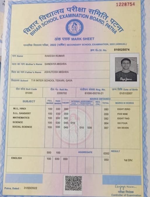 | Exam | Full Marks | Pass Marks | Marks Obtained |