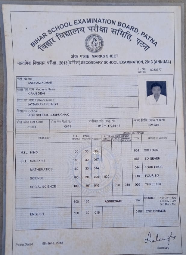 | Exam | Full Marks | Pass Marks | Marks Obtained |