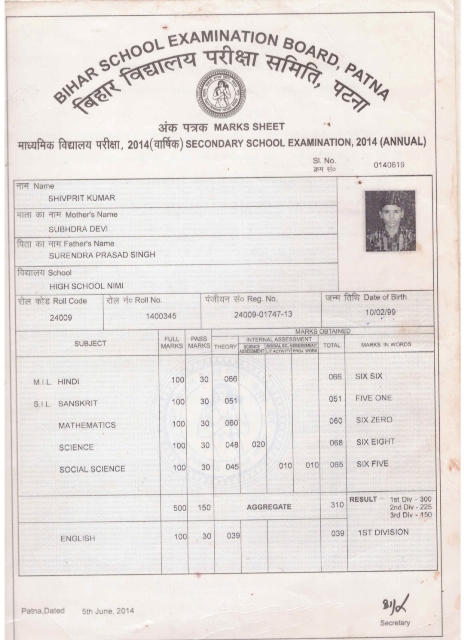 | Exam | Full Marks | Pass Marks | Marks Obtained |