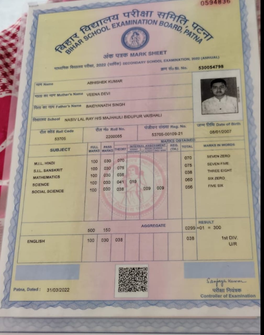 | Exam | Full Marks | Pass Marks | Marks Obtained |
