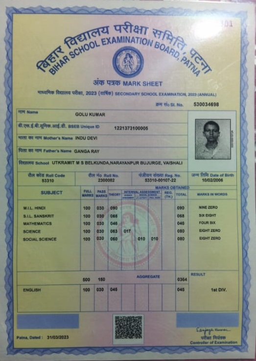 | Exam | Full Marks | Pass Marks | Marks Obtained |