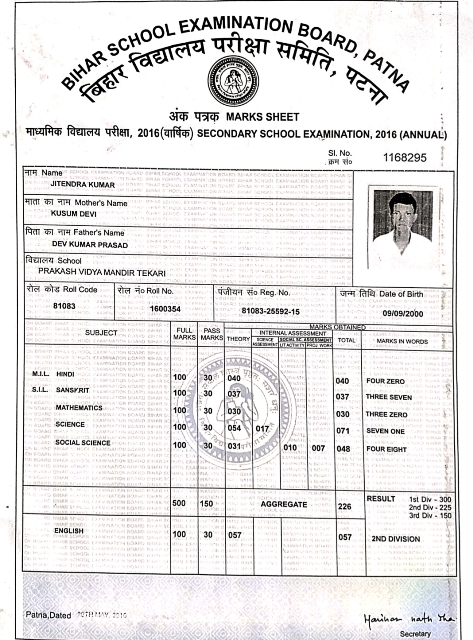 | Exam | Full Marks | Pass Marks | Marks Obtained |