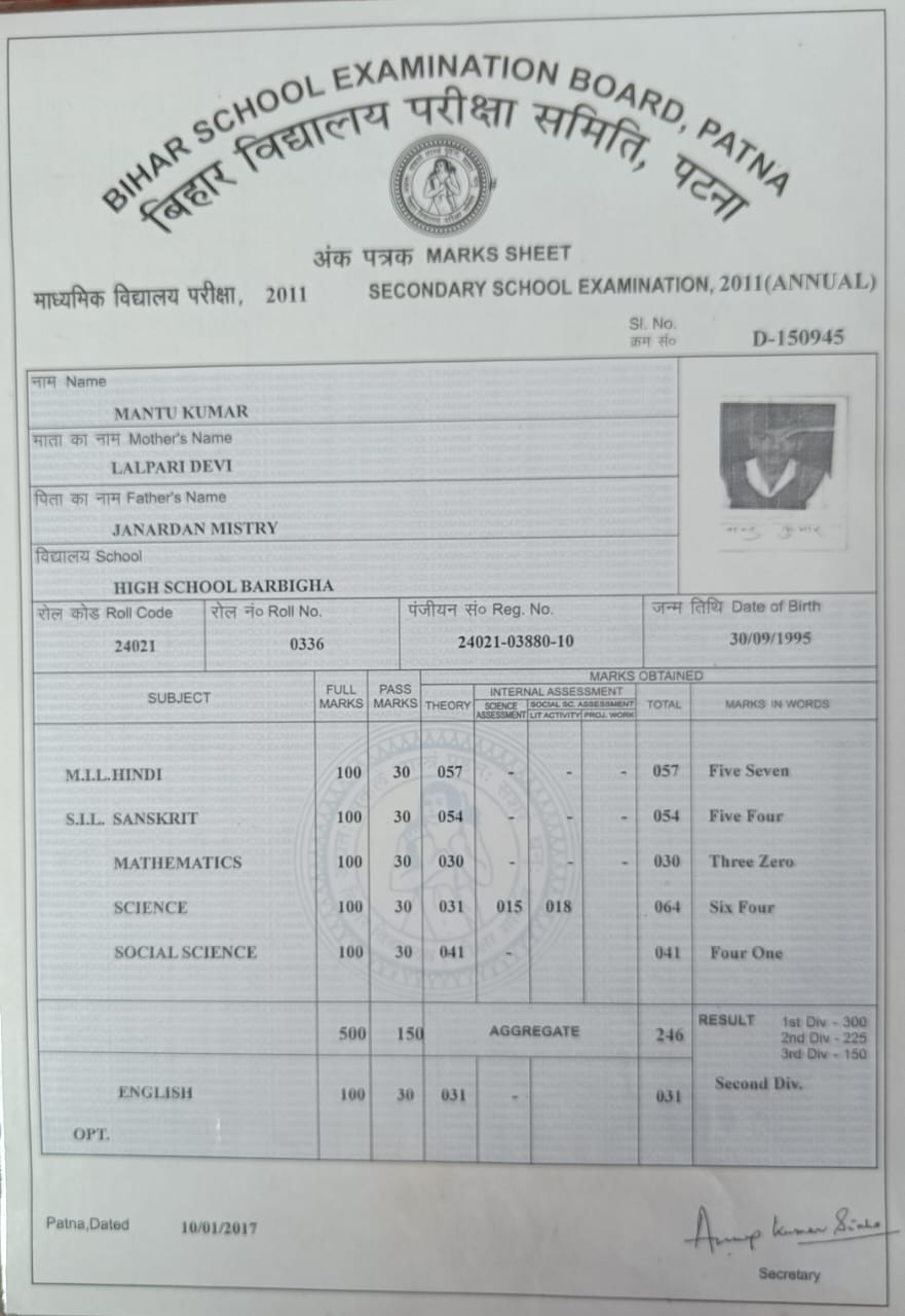 | Exam | Full Marks | Pass Marks | Marks Obtained |