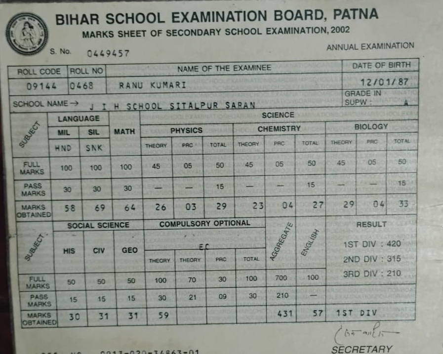 | Exam | Full Marks | Pass Marks | Marks Obtained |