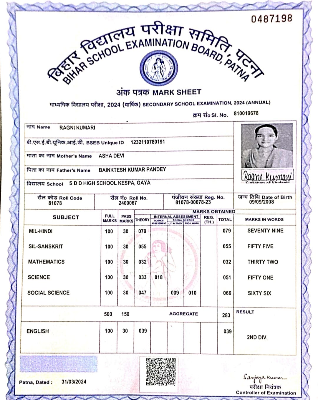 | : | Matric | |