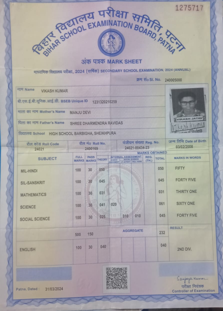 | Exam | Full Marks | Pass Marks | Marks Obtained |