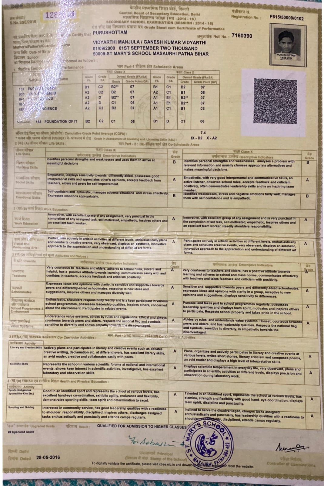 | Exam | Full Marks | Pass Marks | Marks Obtained |