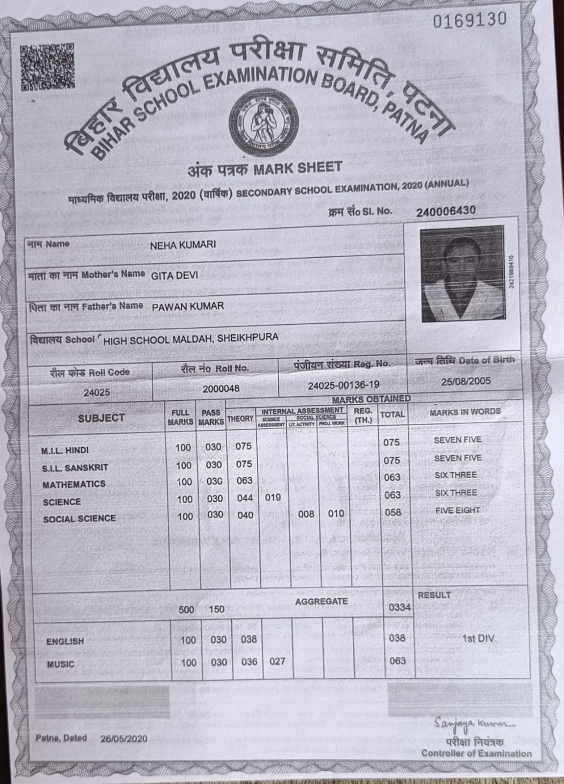 | Exam | Full Marks | Pass Marks | Marks Obtained |