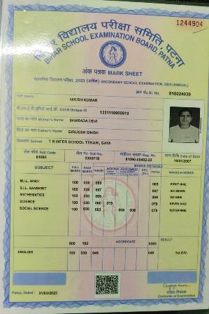 | Exam | Full Marks | Pass Marks | Marks Obtained |
