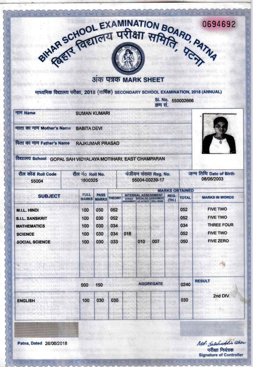 | Exam | Full Marks | Pass Marks | Marks Obtained |