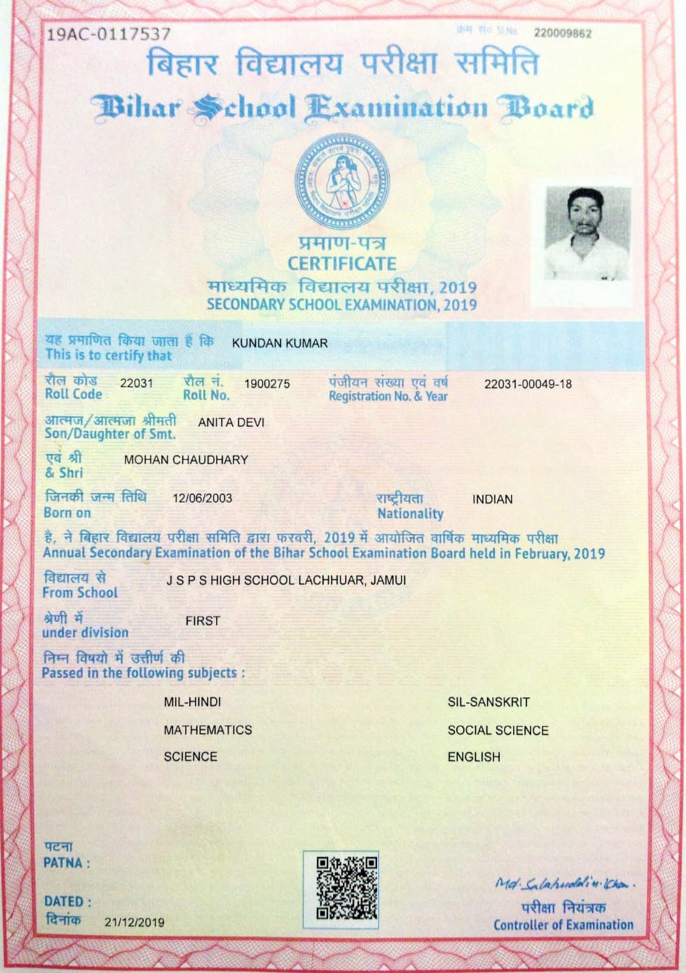 | : | AT-SIKANDRA PO-SIKANDRA DIST-JAMUI STATE-BIHAR PIN-811315, Jamui | |