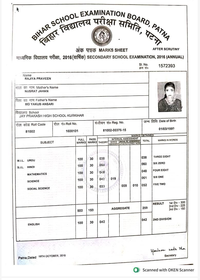 | Exam | Full Marks | Pass Marks | Marks Obtained |