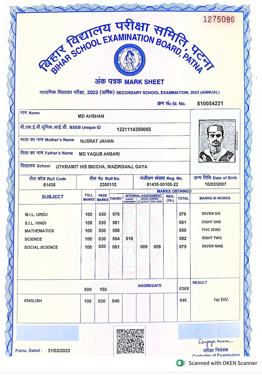 | Exam | Full Marks | Pass Marks | Marks Obtained |