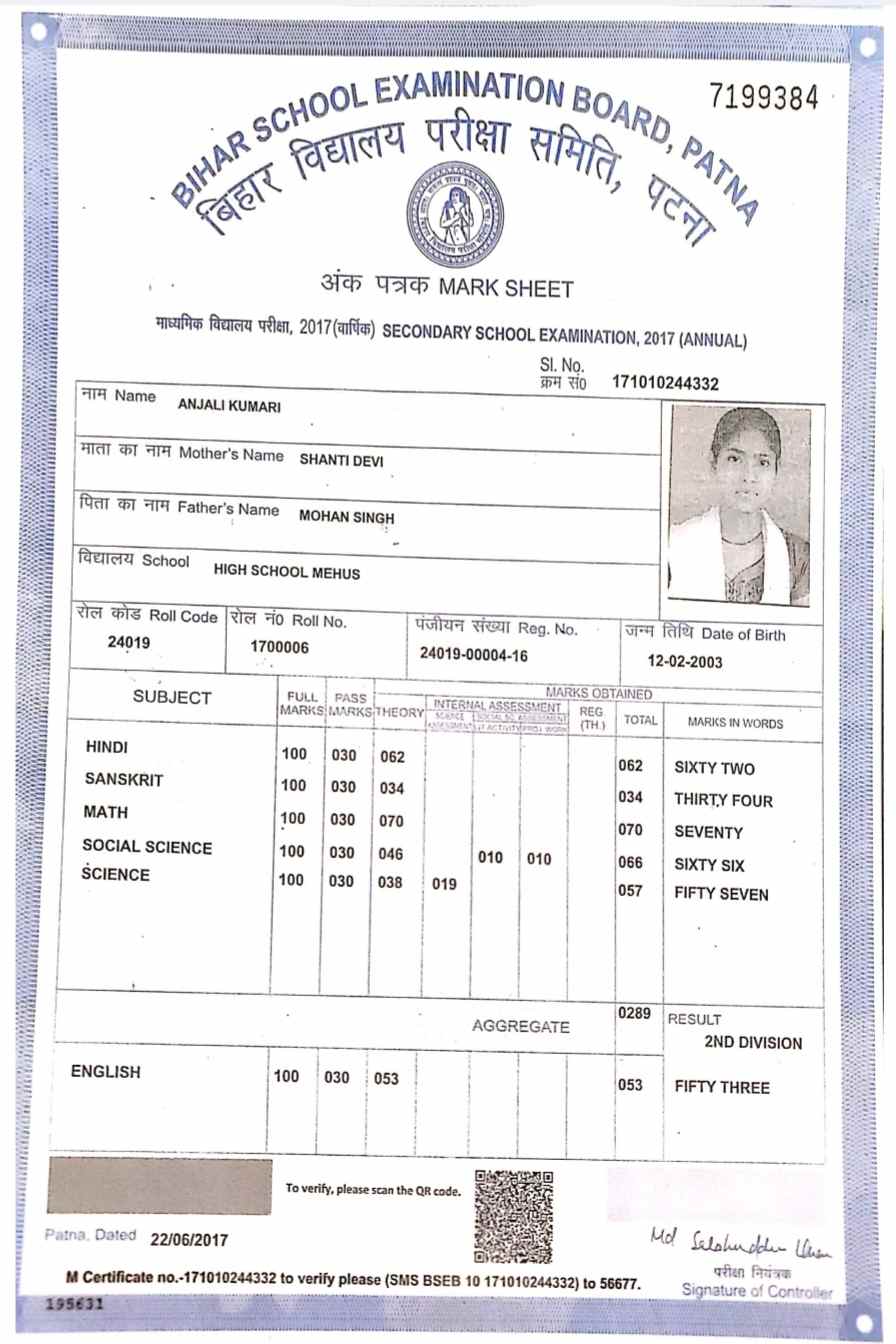 | Exam | Full Marks | Pass Marks | Marks Obtained |