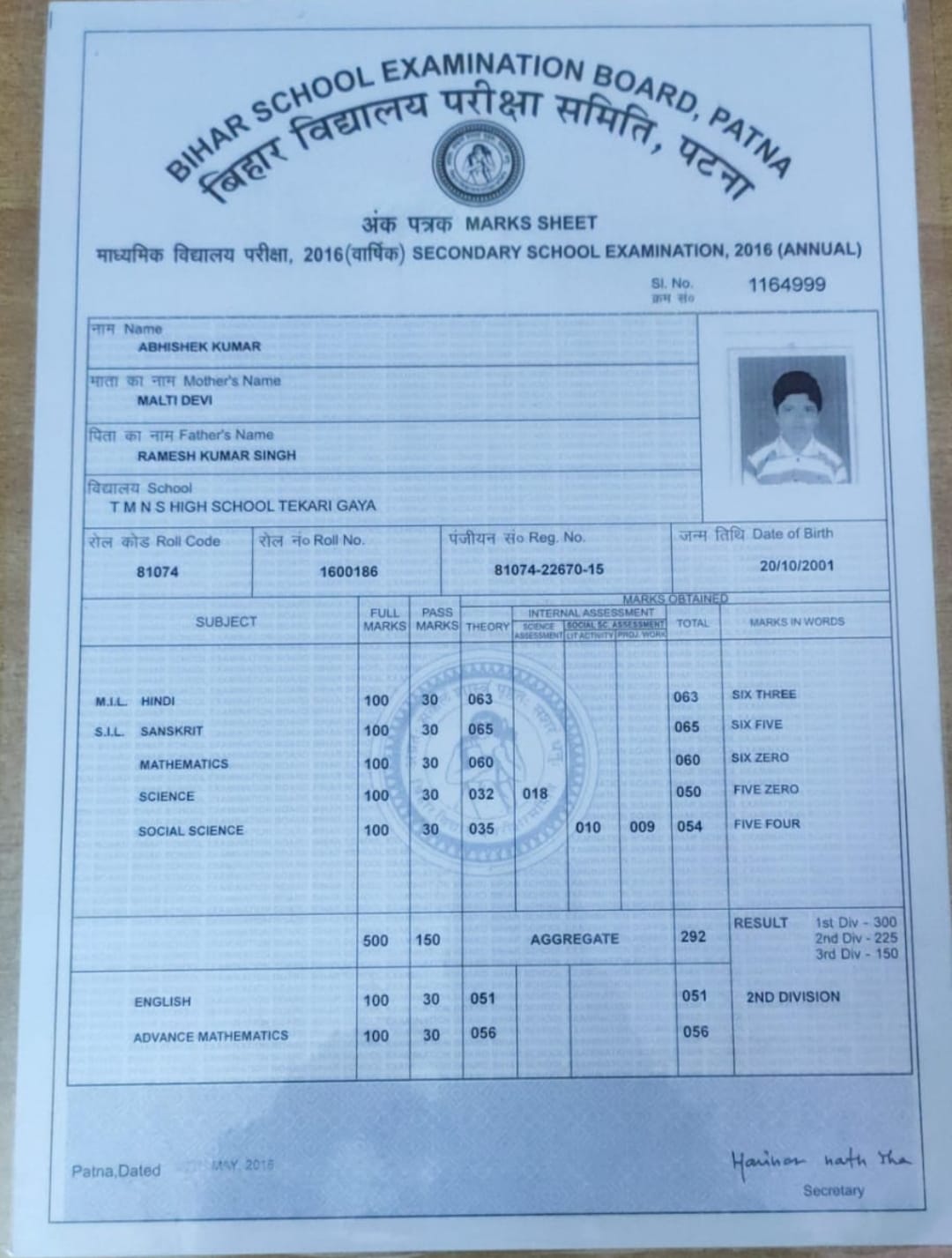 | : | Matric | |