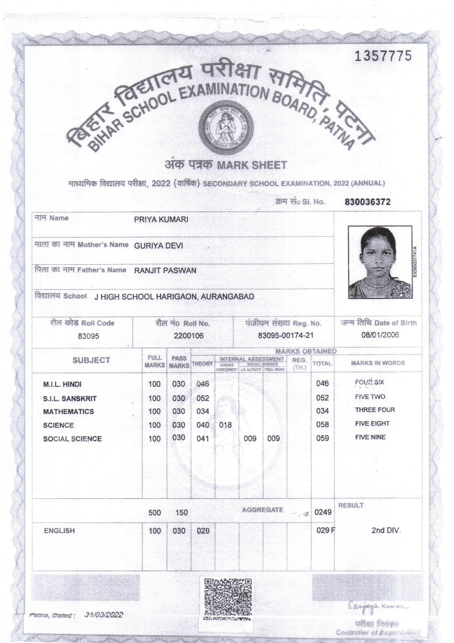 | Exam | Full Marks | Pass Marks | Marks Obtained |