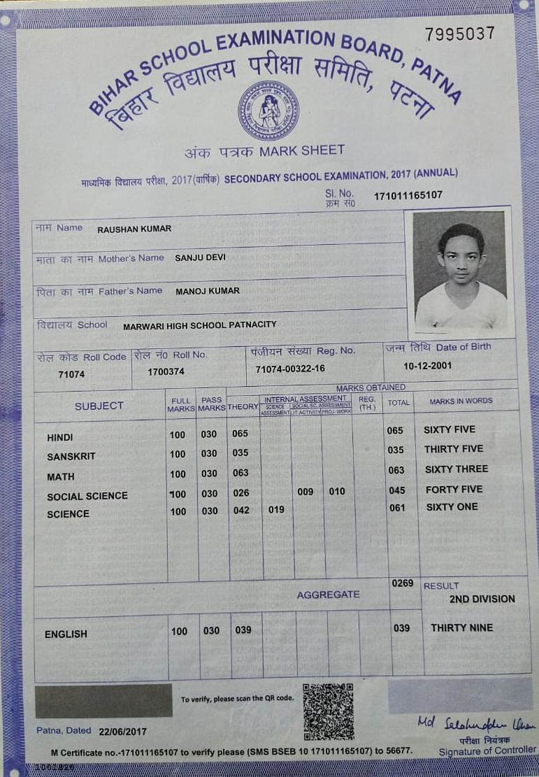 | Exam | Full Marks | Pass Marks | Marks Obtained |