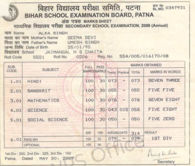| Exam | Full Marks | Pass Marks | Marks Obtained |