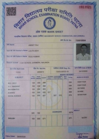 | Exam | Full Marks | Pass Marks | Marks Obtained |