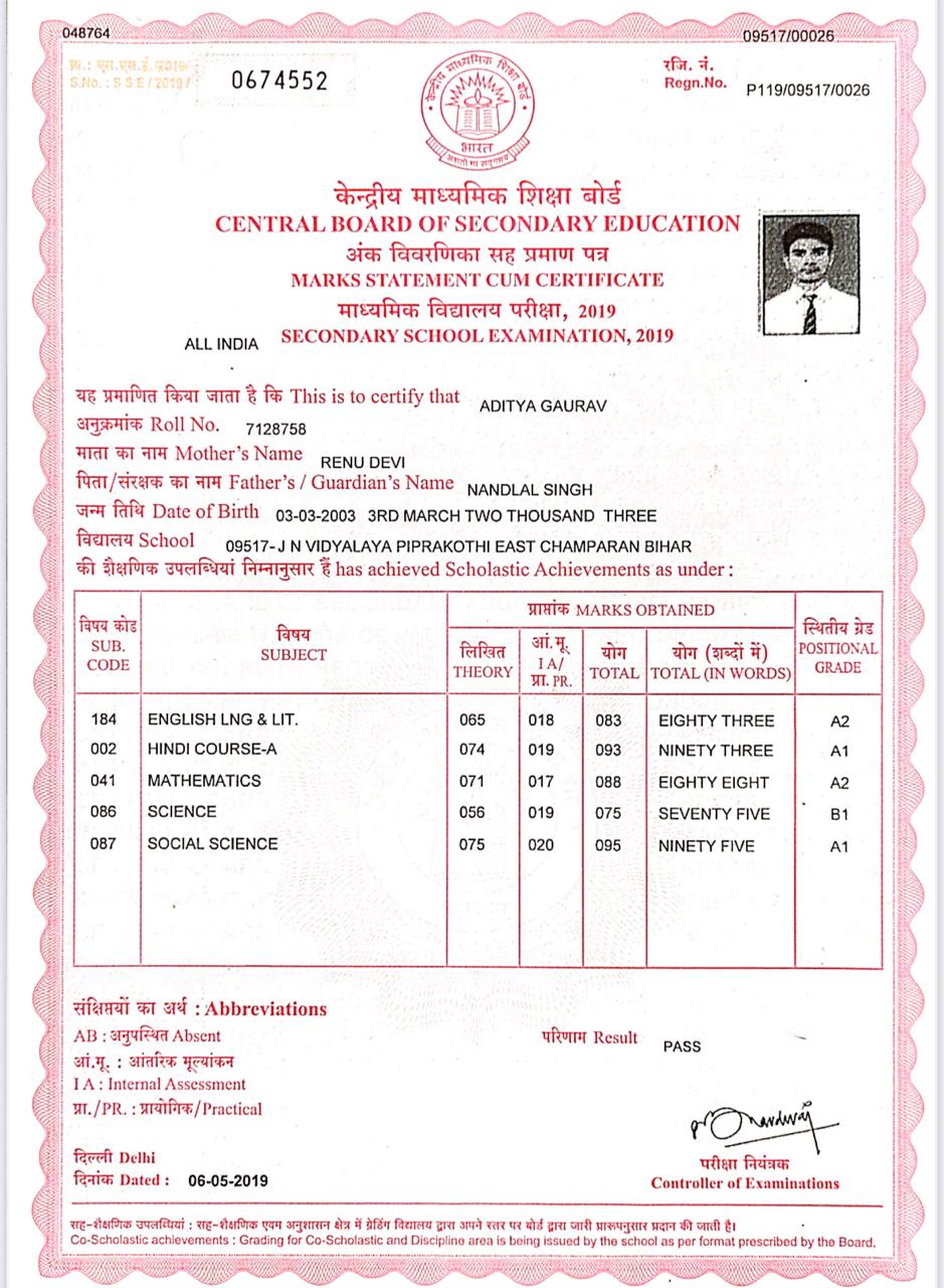| Exam | Full Marks | Pass Marks | Marks Obtained |