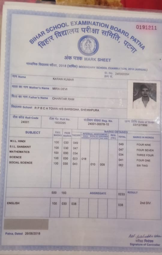 | Exam | Full Marks | Pass Marks | Marks Obtained |