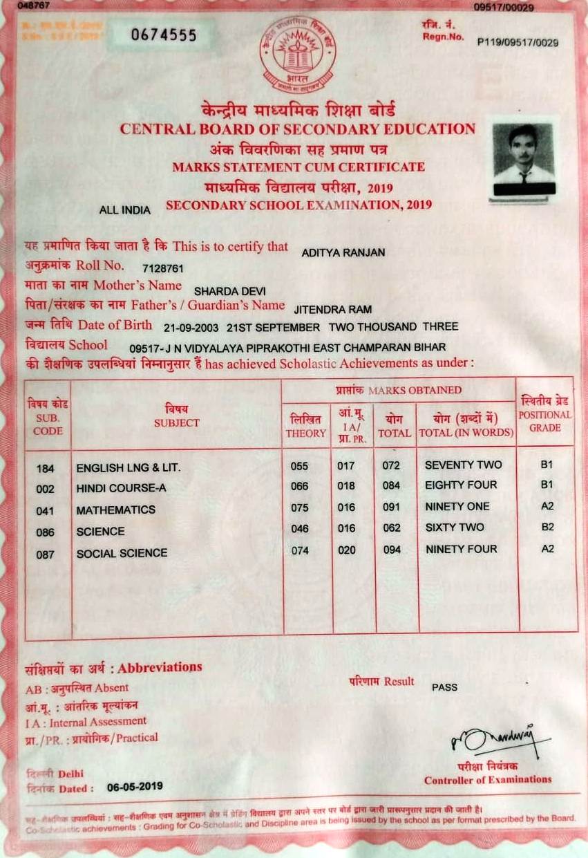 | Exam | Full Marks | Pass Marks | Marks Obtained |