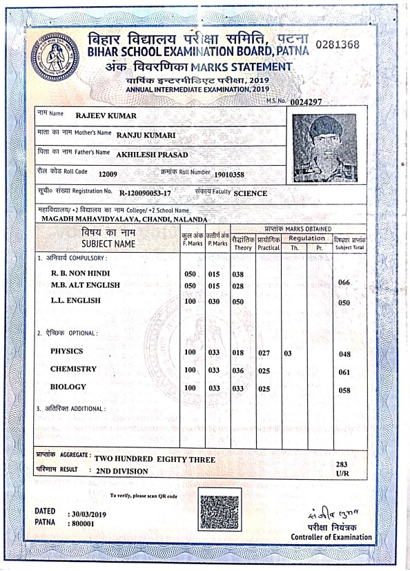 | Exam | Full Marks | Pass Marks | Marks Obtained |