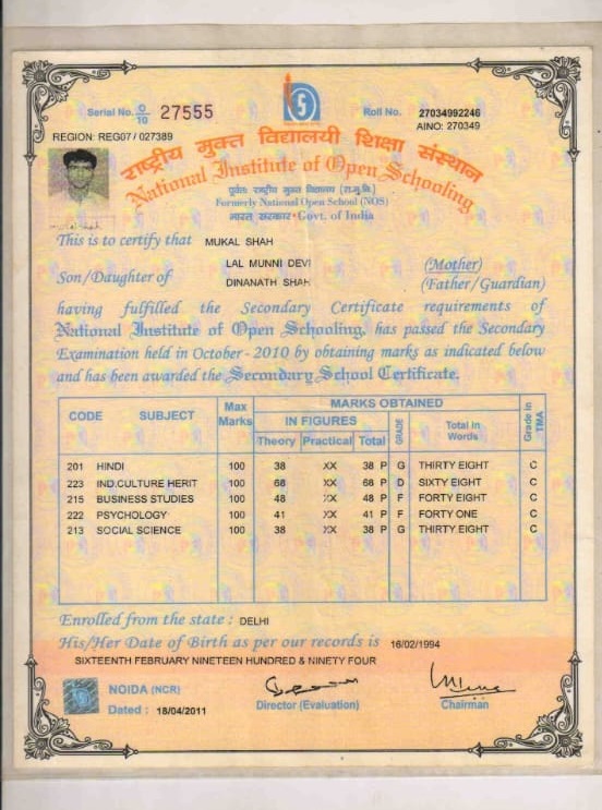 | Exam | Full Marks | Pass Marks | Marks Obtained |
