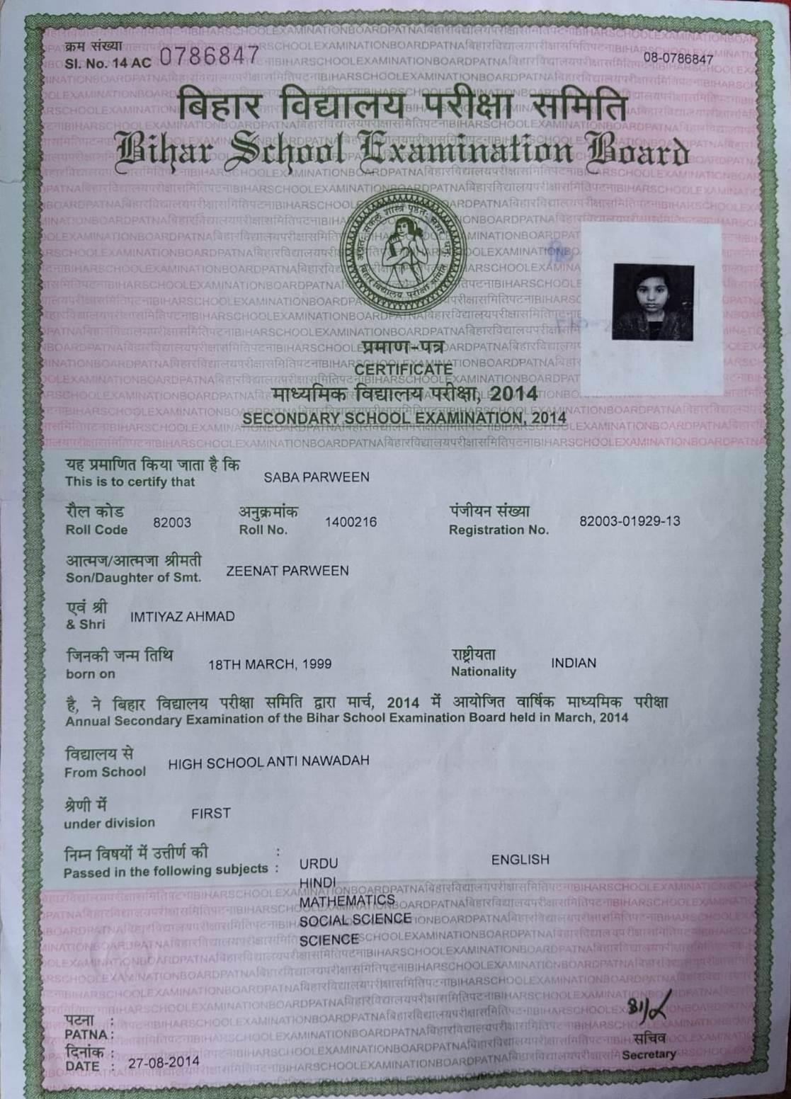 | : | Zeenat Parween | |
