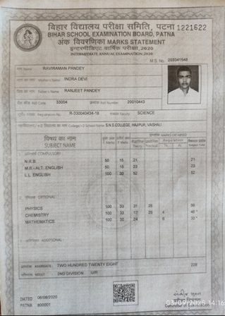 | Exam | Full Marks | Pass Marks | Marks Obtained |