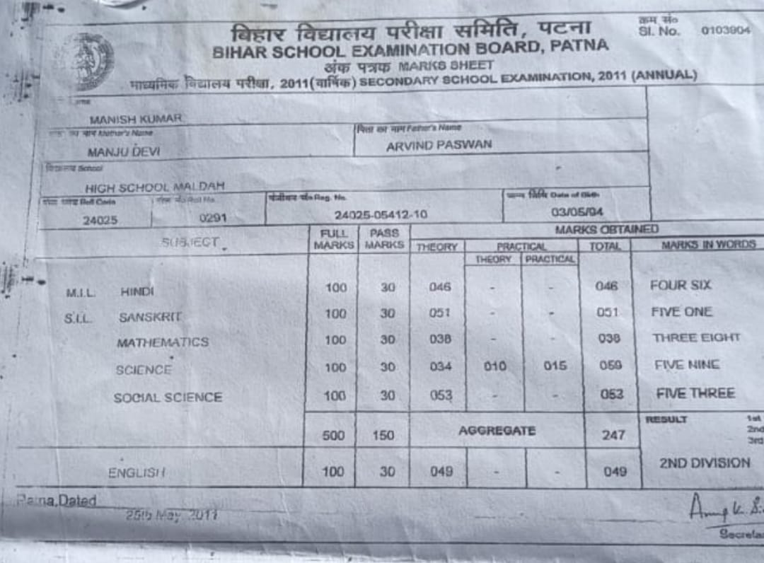 | Exam | Full Marks | Pass Marks | Marks Obtained |
