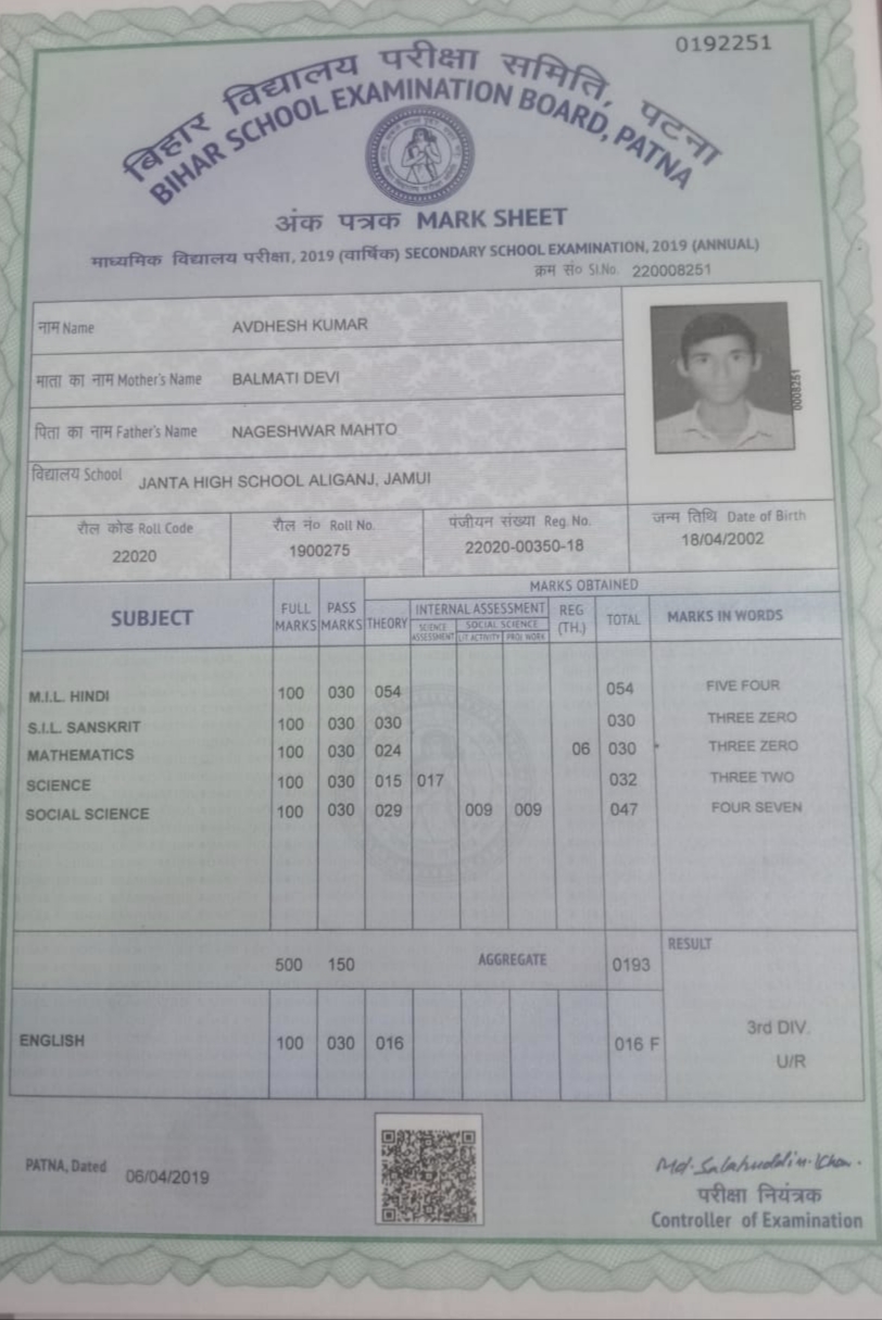 | : | AT-SIKANDRA PO-SIKANDRA DIST-JAMUI STATE-BIHAR PIN-811315, Jamui | |