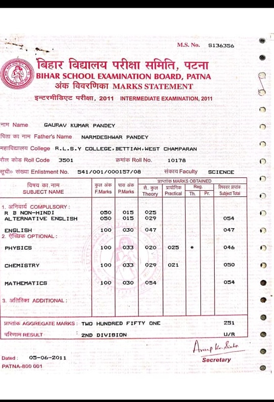 | Exam | Full Marks | Pass Marks | Marks Obtained |