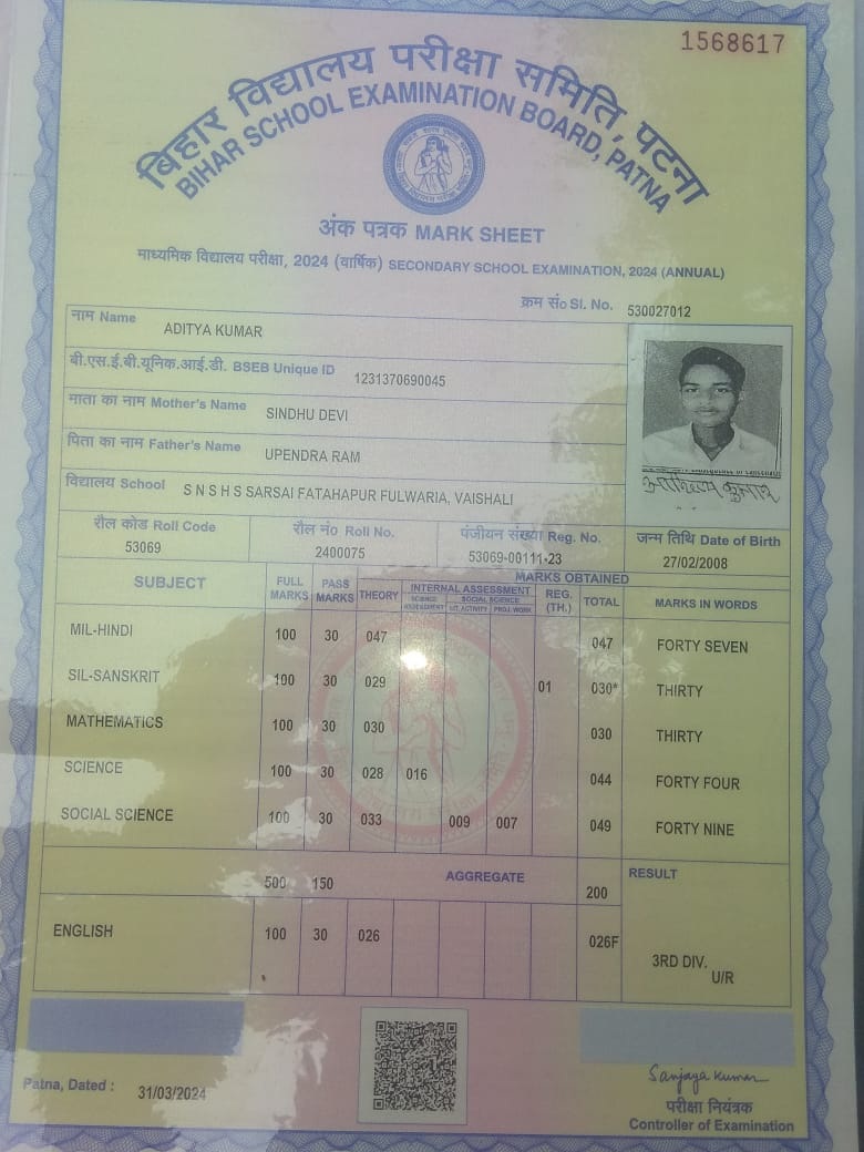 | Exam | Full Marks | Pass Marks | Marks Obtained |