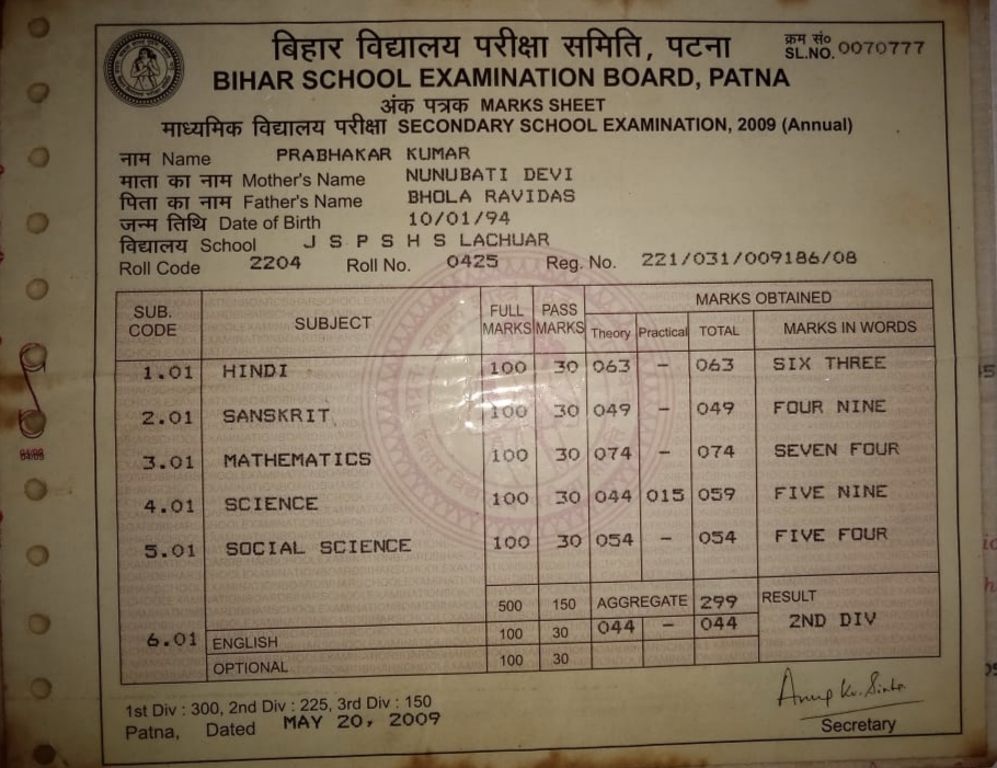 | Exam | Full Marks | Pass Marks | Marks Obtained |