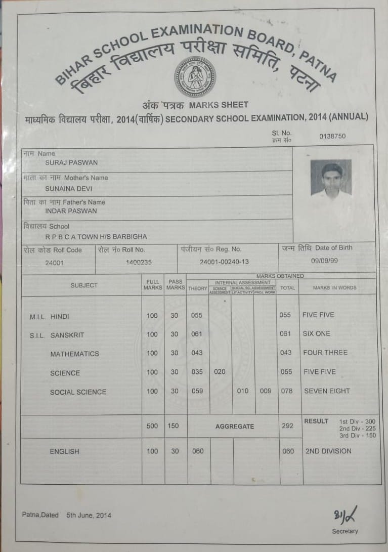 | Exam | Full Marks | Pass Marks | Marks Obtained |